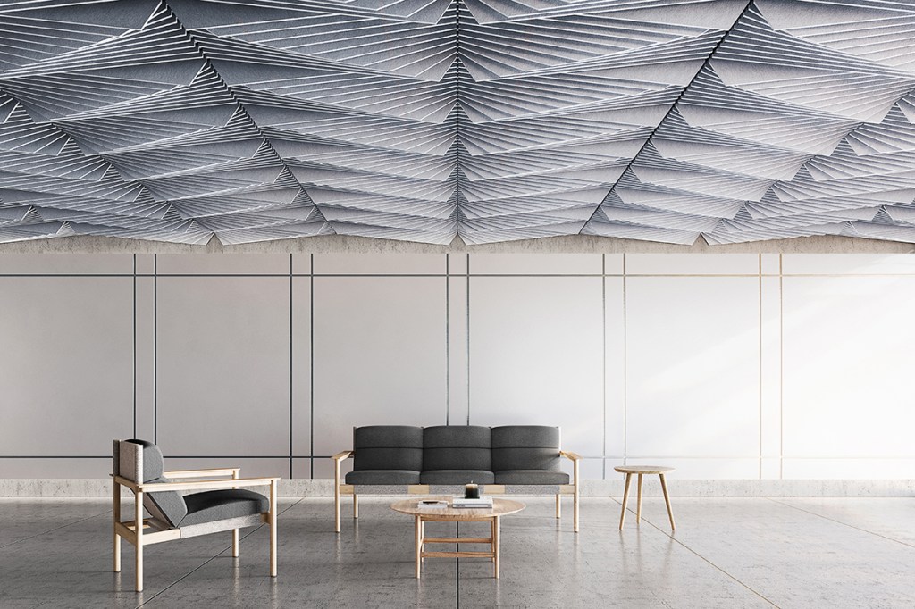 Part of Danish manufacturer's Ecoustic Sculp ceiling-tile collection, Peak was inspired by the works of Santiago Calatrava.