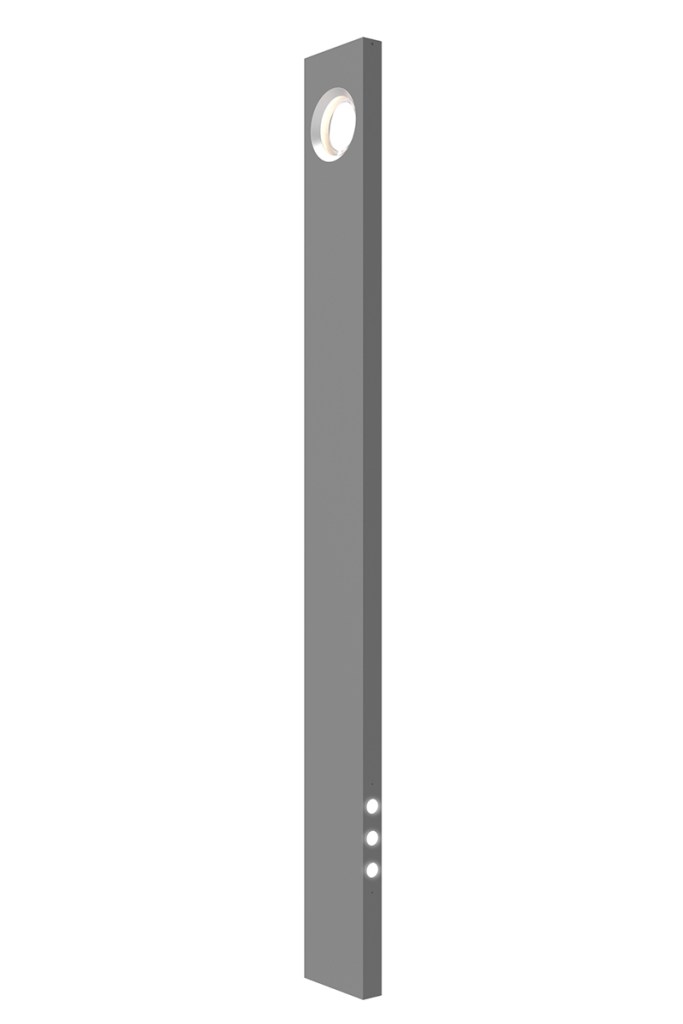 Suitable for public or private outdoor or indoor spaces, HessAmerica’s Portal features an extruded aluminum body with a circular cutout ringed with an acrylic lens containing four 3000K or 4000K high-power LEDs with a CRI greater than 80. The 38W column measures 12″ wide, 3″ thick, and 8′ or 10′ tall. Optional marker lights in groups of three with diffused or controlled optics offer supplemental illumination of pedestrian paths, and can be specified on one or both sides of the column. Offered in matte silver gray metallic, dark gray, graphite gray, and black, as well as in custom colors. hessamerica.com