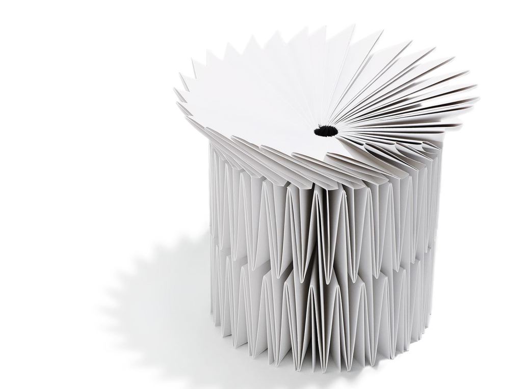 Created by Danish designer Cecilie Manz, Lot of Paper is a limited-edition seating piece made from paper folded in tessellations. Constructing the seat requires two days and 12m of 400g Artic Paper Munken. Measuring 380mm tall with a 490mm diameter, the piece weighs 2.4kg and can support a 30kg (66-lb.) load. It is available at the Galerie Maria Wettergren in Paris. • www.ceciliemanz.com