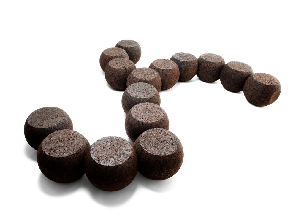 Once consigned primarily to tack boards and wine stoppers, cork has made large strides in building products and is now used in everything from flooring and wall finishes to furniture. The renewable, natural, and durable product can be harvested every nine years without damage to the cork oak tree. The Lagarta stool by Corque is a modular seating system made from expanded agglomerate cork—a composite material containing large granules of virgin cork, timber, and cork byproducts—and finished in a water-based varnish. Standing 38mm tall and 420mm in width and length, the Lagarta stool has a hollowed niche in one of its rounded sides, allowing adjacent seats to nest together. • corquedesign.com