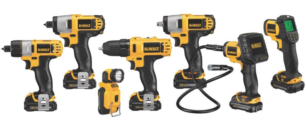 DeWalt’s 12 Volt Max Lithium Ion platform includes nine components in a system designed to handle a variety of drilling, fastening and measuring applications. A battery placed at the bottom of the handles allows for the contoured grip. Each tool incorporates unique features, including three LED lights on the screwdriver, impact driver and impact wrench, designed to eliminate shadows.