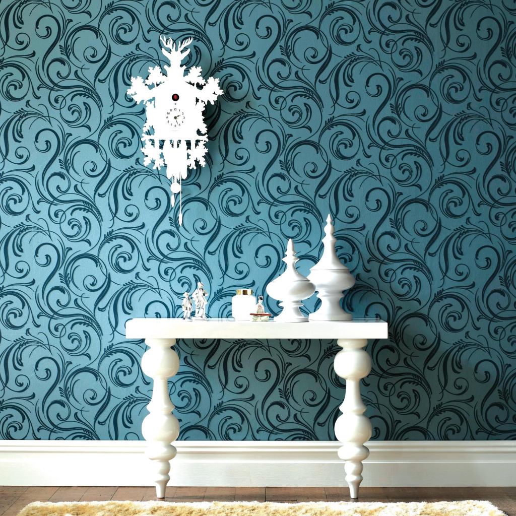 The Plush Flock wallpaper collection designed by Laurence Llewelyn-Bowen for Graham & Brown offers four design patterns: Flock Star Stripe, Kinky Vintage, Swurly Wurly, and Velvet Undergrowth. Available in widths of 20.5″, the wallpaper features real flock detailing on a nonwoven paper substrate and two or three color options for each pattern. Plush Flock can be washed by sponge. • grahambrown.com