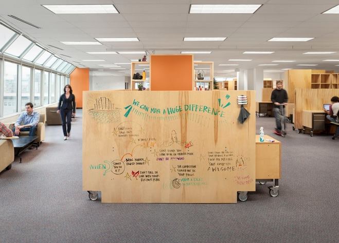 In legendary entrepreneurial fashion, IdeaPaint was conceived in a dorm room by Babson College freshmen in 2002. The product, a coating that turns wall surfaces into whiteboards—an idea that everyone probably wishes they had thought of first—became a reality through the sheer will of 20-somethings following years of research and failure. Clear, a transparent version of IdeaPaint, turns smooth surfaces into whiteboards or, more accurately, colorboards that allow the surface’s original color to show through. The low-emission and nearly-odorless dry erase paint is Greenguard certified for Children & Schools. • ideapaint.com