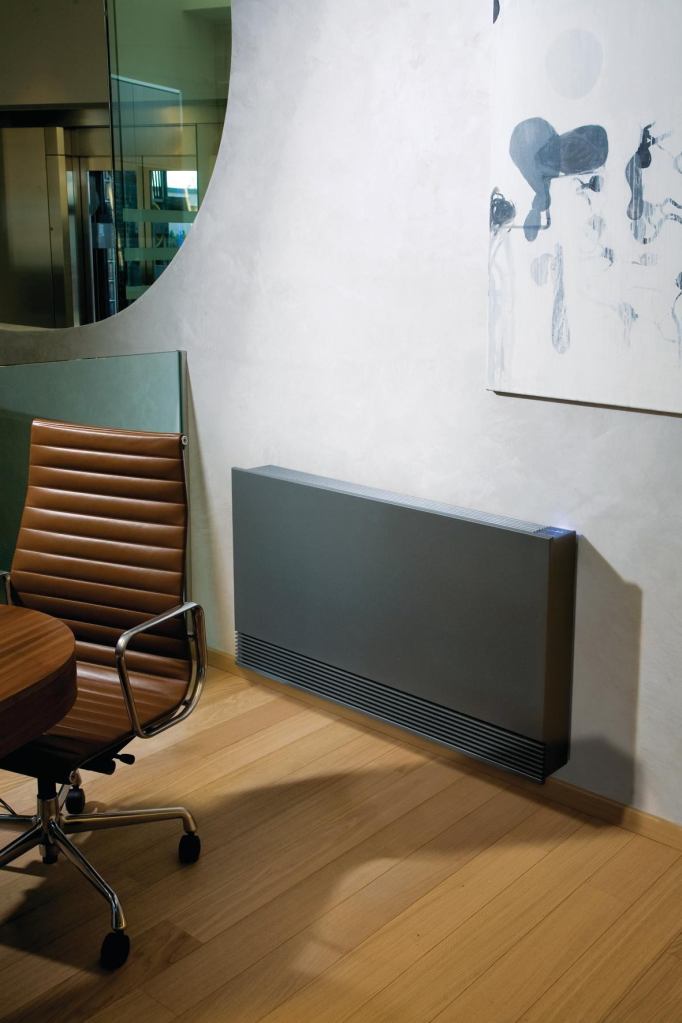 Briza by Jaga Climate Systems is a slim heat exchanger measuring 4.5″ in depth. Using the company’s Low-H2O technology, the heat exchanger uses a lower water volume than traditional radiators, resulting in faster heating and cooling and more accurate temperature control. Producing just 30 dBA, the unit comes in white and metallic gray. Wall-mounted models are 25-43/64″ high with lengths between 28-1/2″ and 60″. A slightly smaller built-in model for walls and ceilings is available. • jaga-usa.com