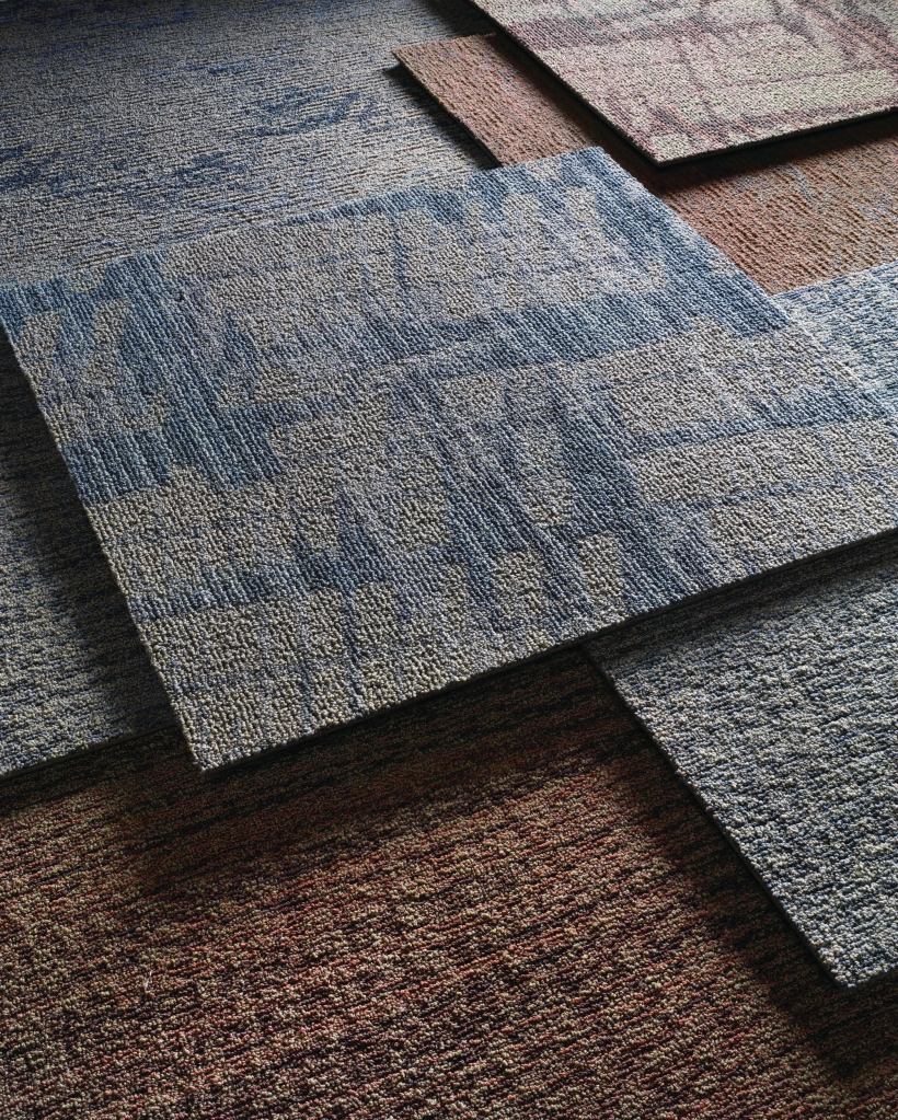 The Mohawk Group combined light and dark motifs with geometric patterns in this modular collection, inspired by the “rurban” trend in which urban cultures are embracing rural values. It is manufactured with SmartStrand Contract with DuPont Sorona, a recyclable, rapidly renewable, biobased fiber that requires 30% less energy to manufacture than does nylon. Nine colorways and three patterns are available. mohawkgroup.com