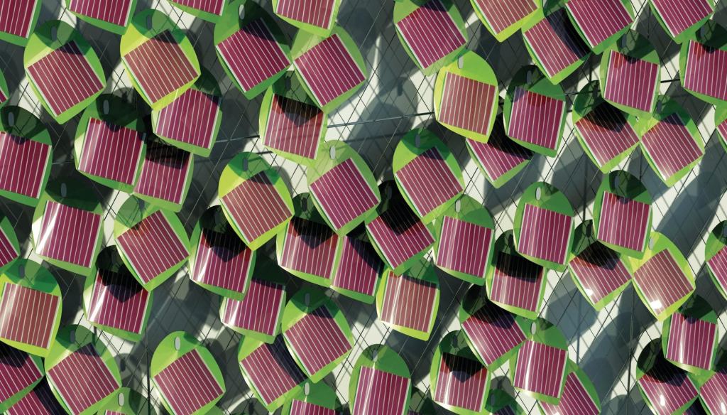 Brooklyn, N.Y.–based design firm SMIT has created Solar Ivy, incorporating thin-film photovoltaics that mimic the form of climbing ivy. The system can use organic, amorphous silicon, or CIGS photovoltaics, which deliver up to 0.5W, 0.6W, or 4.0W per leaf, respectively. The density and layout of the leaves—which are mounted to stainless steel mesh anchored into building walls—may be adjusted to preserve building views or control heat gain and loss. • solarivy.com