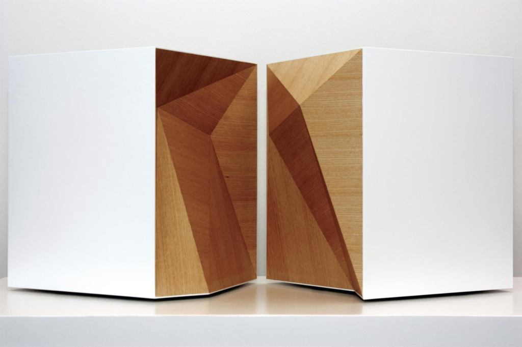 Suitable for use as seats or side tables, Within by Studio Vision A&D couples MDF cabinets with complementing three-dimensional wood-veneer façades. Each piece is 35cm square and 45cm tall. Available for purchase this fall, Within will likely be offered with walnut or elm veneer faces (ash shown), and in different colored lacquer finishes, including white (shown). • studiovision.se
