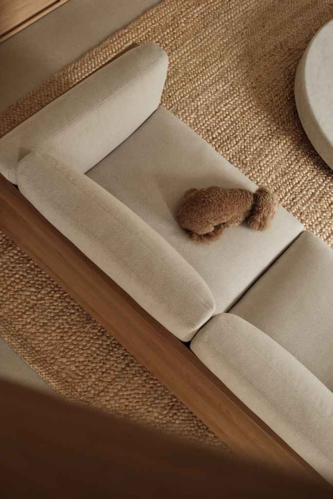 Behind its minimalist façade, the Drift Sofa Group delivers technical sophistication. The cushions feature responsibly sourced down feather jackets layered over plant-based latex foam—a renewable alternative to petroleum-based foams—resting on a concealed fabric suspension system. The result: a seating experience that supports lounging, napping, or casual conversation with equal ease, all while reducing environmental impact.