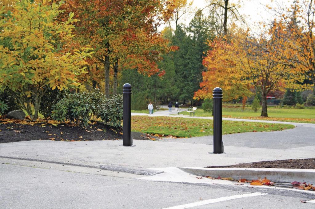 Reliance Foundry Co.’s Series 7900 (shown) and Series 8900 removable bollards are designed for applications where occasional access is required, such as in the case of an emergency. The bollards are set in sleeves for temporary installations and in receivers set into a concrete foundation; the receivers are available with a chained lock to secure the post or with a hinged lid. The steel bollards are finished with a corrosion-resistant powdercoat that is baked on to reduce the release of VOCs. A hammered-textured finish is standard; multiple color options or a stainless steel finish are available. http://www.reliance-foundry.com/bollard/removable