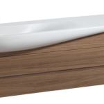 The IlbangoAlessi One washbasin mounted on one of the line's new wood vanities.
