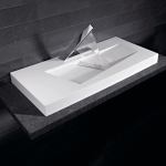 A partnership between Laufen and Alessi, the IlbangoAlessi One is a collection of innovative washbasins and furniture pieces that experiment with new shapes and ingenious functions. Ceramic pieces, such as this countertop washbasin, come standard with a grime-deflecting coating. It may come with or without the tap holes for wall-mount faucets.