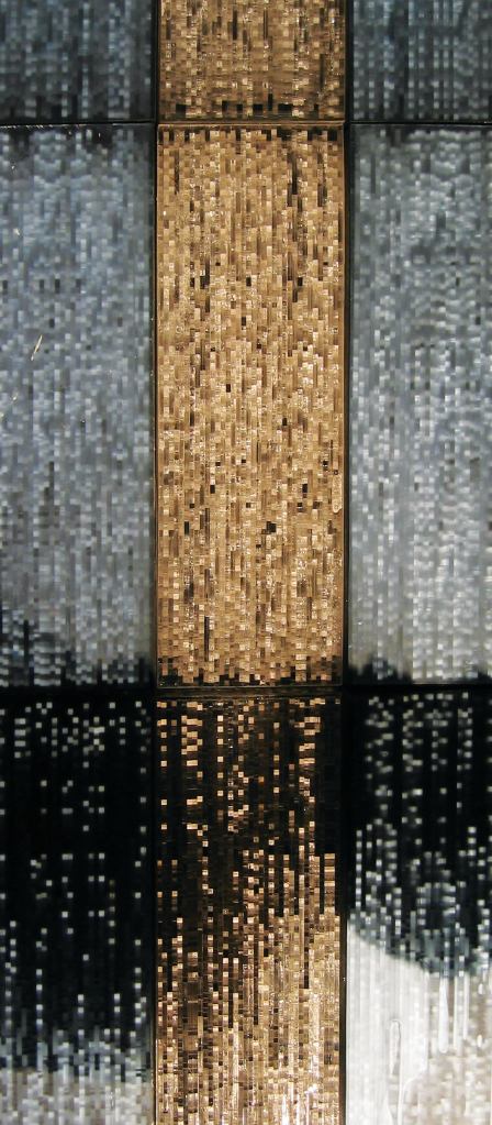 Each Sensitile SystemsScintilla panel is constructed to have thousands of light-conducting channels. These optical pathways activate the panels to give them an interactive surface that responds to shadows, movements, light, and colors. The core composition is polymethyl methacrylate (PMMA) and cladding composition PMMA, tempered glass, polycarbonate, and 100 percent recycled PETG. More than 500 color compositions are available. Total panel thickness is 3/4 or 11/4 inches. sensitile.com; 313.872.6314.