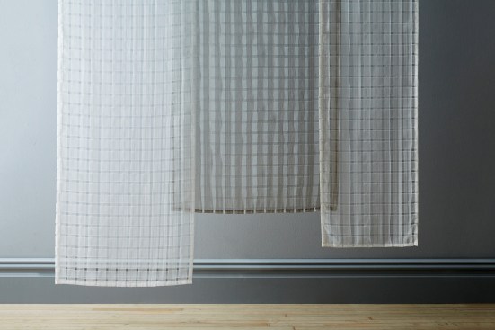 adaptation of the classic plaid. For use along window banks, the translucent polyester fabric