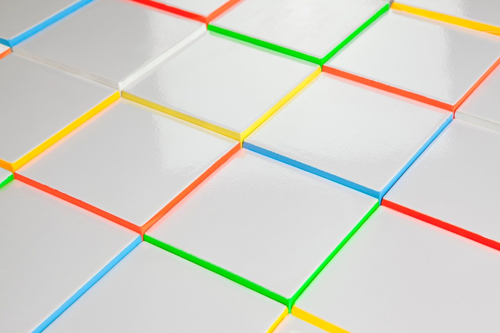 Scales, PerondaRaised edges in neon blue, green, pink, orange, red, and yellow turn these aptly-named wall tiles by Valencia, Spain–based studio MUT Design for Peronda into a vibrant array of scales. The 12cm squares have diagonally sloped sides and their white body reflects the bright hues to create a soft, colorful glow.