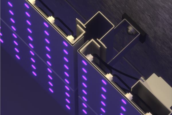 Create dynamic façades that give life to art installations, advertisements, company names, and more with integrated graphics, text, and animation. Alucobond Media from Traxon Technologies comprises aluminum architectural panels whose imbedded LEDs can display 16.7 million colors in the RGB color space. The custom-designed panels are suitable for both interior and exterior façade applications. Alucobond Media can be used with DMX512 and e:pix LED controls. traxontechnologies.com