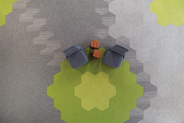 A new take on carpet tile takes shape in Shaw Contract Group’s Hexagon collection, whose six-sided tiles offer increased design potential compared to traditional square or rectangular tiles. The series comprises beveled, linear, linear shift, and plane tiles, all made from the company’s Eco Solution Q fiber, which features 45% recycled content. The collection’s 29 colors are designed to complement one another and can be joined in groups of three tonal values to demarcate zones on a floor. shawcontractgroup.com