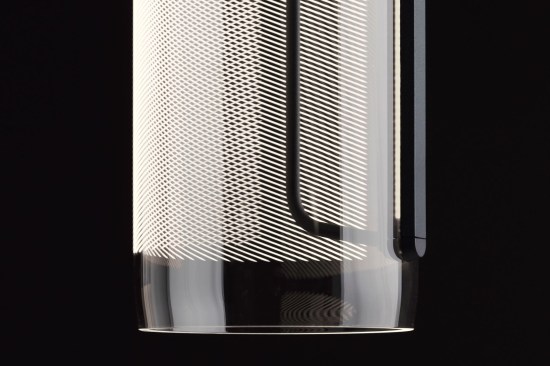 German designer Stefan Dietz combined Bohemian glass cutting, luminous street signage, and a contemporary vision for this collection of LED pendant and ceiling lamps, in which the light emanates from the piece of glass while the source remains invisible. The pattern of striations etched into the borosilicate glass refracts, radiates, and reflects the light coming from the fixture’s longitudinal-located LED source. When switched off, the lamp seems to disappear. vibia.com