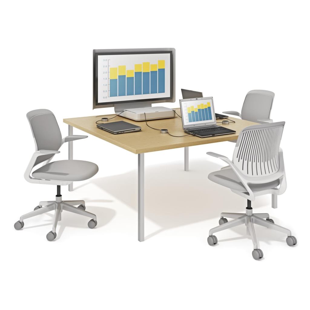 Steelcase unveiled additions to its collection of collaboration systems. Media:Scape Mini is a tabletop video-conference unit that features a high-definition display and mounted camera, as well as four pucks that users can connect to their laptops to switch between shared computer screens. The Mini allows users to integrate the system into existing spaces without replacing furniture. A mobile cart-mounted version is also available. • www.steelcase.com