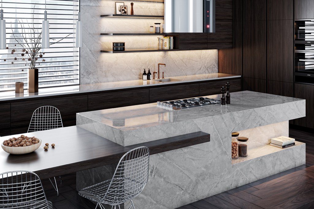 This collection of ultra-compact architectural surfaces was inspired by the texture and look of natural stone. Composed of a blend of porcelain, glass, and natural quartz, the slabs are suitable for use in interior and exterior applications, including worktops, walls, high-traffic flooring, stairs, and façades. Stonika’s surfaces can resist scratch, stain, heat, thermal shock, and ultraviolet light. The 56″-wide, 126″-long slabs come in thicknesses of 0.3″, 0.47″, 0.78″, and 1.18″, and in six new colors (Sogne shown). dekton.com