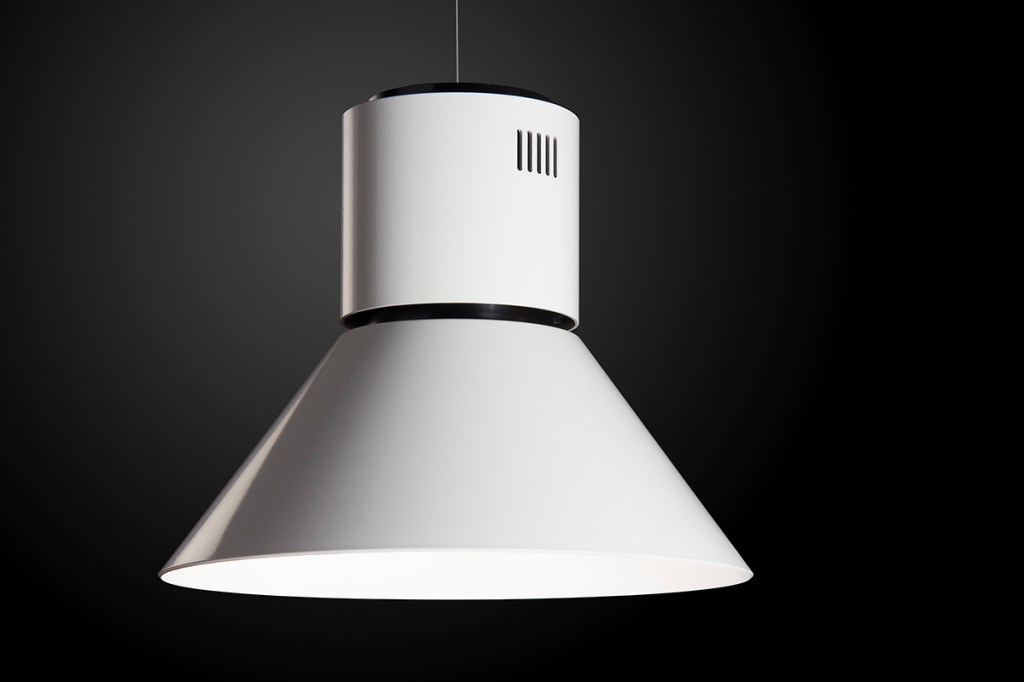 Designed by Artec3 Studio for Nordeon USA, this configurable, indoor pendant comes with a stainless steel suspension aircraft cable. The pendant uses a single Chip-on-Board LED module with reflective optics fitted within the luminaire’s housing. Available in 3000K or 4000K, with a CRI of 80, Stormbell delivers up to 5000 lumens. The fixture’s aluminum housing and polycarbonate shade each measure 6.8″ tall; the shade comes in diameters of 6.8″ or 16.5″. Stormbell is offered in standard or deco housing options, the latter of which comes with an illuminated band between the housing and the shade. The standard housing is offered in a high-gloss white finish, while the deco housing is offered in high-gloss black or white. The shades are offered in white, black, and opal. nordeon-usa.com