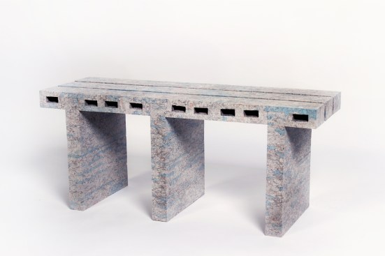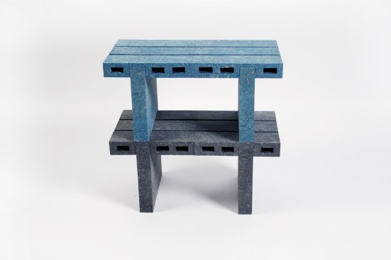 Though he’s still figuring out more applications for his creation, Lee has already put together a furniture series called PaperBricks Pallets, which consists of a side table and two benches. The collection demonstrates the use of PaperBricks as functional building blocks. “PaperBricks are currently under development into interior pieces such as wall panels and room dividers [in order] to further [explore] series of furniture and objects,” Lee tells ARCHITECT in an email.