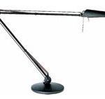 An LED version of the company’s Air task light, Air LED incorporates three 3W LEDs in its ergonomic design. Its light engine features Luxo’s proprietary lens array, which converts the normally pinpoint light source into a wider, asymmetric beam spread, pushing light forward to eliminate glare. The luminaire has a multi-adjustable, spring-balanced arm that comes in 24- and 35-inch lengths. A weighted circular base or mounting clamp is offered, and matte black and gray aluminum finishes are standard.