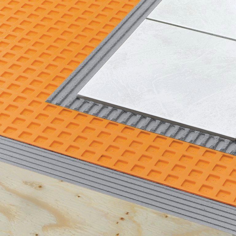 For use in tile installations, H.B. Fuller Construction Products’ white or gray dry-set mortar comes in 50-lb. moisture-resistant bags. Designed specifically for Schluter Systems’ Ditra uncoupling membrane as well as its Kerdi waterproofing membrane, the mortar (shown as gray) allows for level transitions between tile and flooring, and waterproofing, respectively. tecspecialty.com