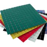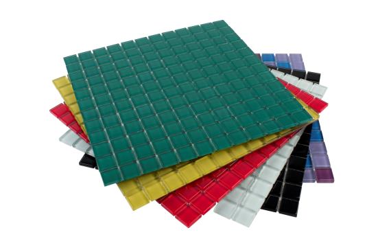 The glass tiles come in 1-inch-by-1-inch squares mounted on a 12-inch-square mesh for installation on walls, countertops, and most residential floor areas such as bathrooms. In addition, tiles shaped like puzzle pieces add a whimsical note to the series. The Crayola Collection officially will be introduced April 17-20 at the Coverings show in Orlando, but the entire line currently is available for purchase by architects and builders.