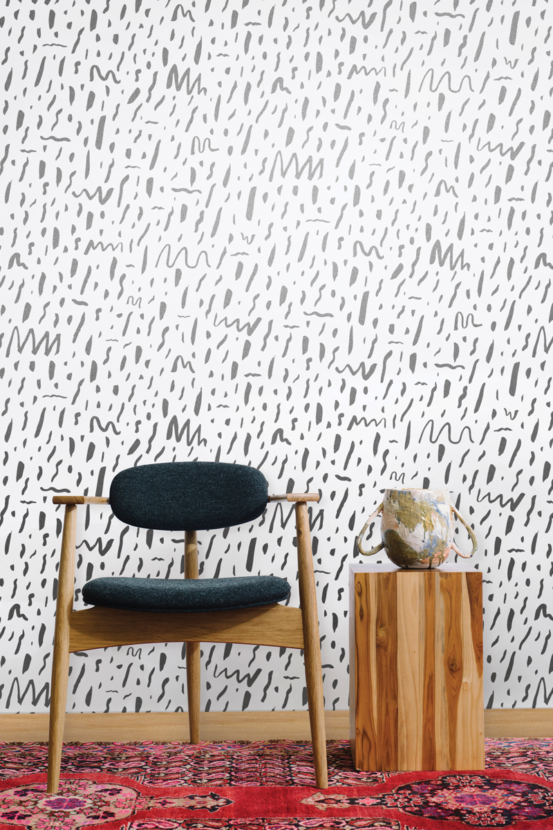 This new wallpaper collection is covered in squiggly lines that resemble doodles on a sketchpad.