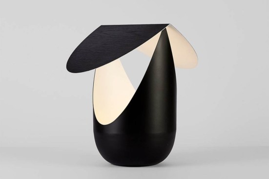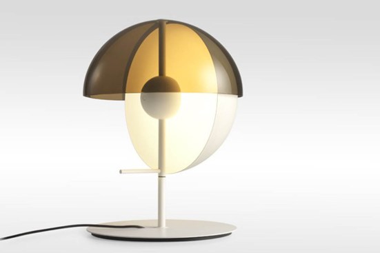 Named after the mythological Greek goddess, the spun-metal fixture is topped with a semi-spherical thermoformed plastic shade and stands atop a lacquered iron base and stem. The 7.8W Theia measures 17″ tall by 12.5″ wide and is available in white (shown) and black finishes. marset.com