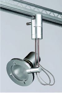 A low-profile track system that combines extruded aluminum and clear polycarbonate, Tangent can be installed in three configurations—surface mounted or suspended in a solid I-Beam or perforated truss. Its “side-by-side” busbar design allows the track to be surface mounted flush to ceilings and walls in both straight-run arrangements or bent into architectural curves. A selection of fixtures is available, each accepting low-voltage MR16 and T4 bi-pin lamps, as well as line-voltage ES16 and G9 lamps.