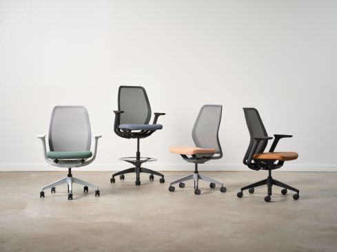 19. Maximum support is part of the design of Pli task seating from Allsteel. Courtesy of a four-point seat suspension system and an engineered backseat, the chair adjusts to the movements and contours of each user. allsteeloffice.com