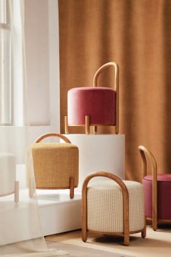 3. Simple geometry inspired the Bao collection for HBF. Designed by the female-owned and operated firm Alda Ly Architecture, the collection of poufs features looped back handles aimed to encourage movement. Each Bao pouf is upholstered in a performance-coated and bleach-cleanable fabric; a full-grain leather option is also available. hbf.com
