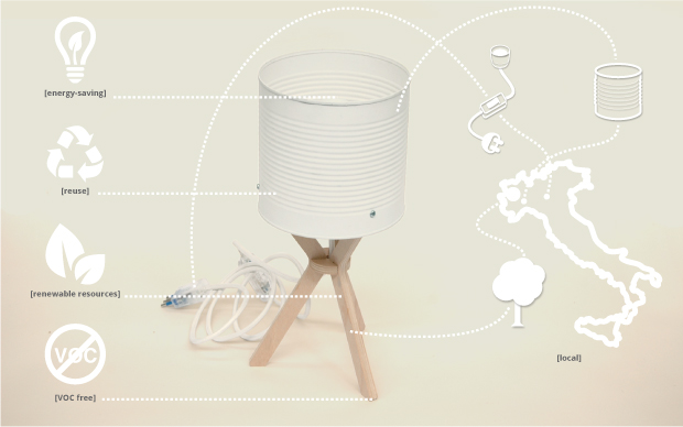 Their latest design, the Margherita lamp, continues their commitment to eco-design with a new spin— a lampshade made from recycled cans.