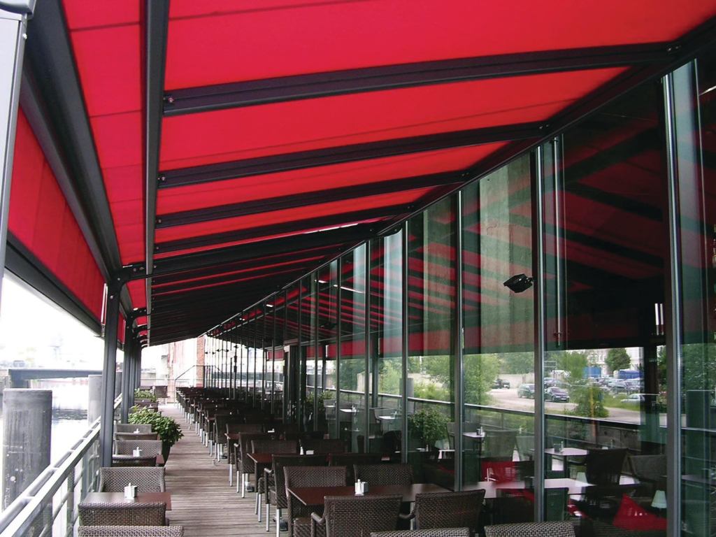 Tendal One, manufactured by Durasol Awnings, is a motorized, retractable solar awning system designed for balconies, decks, verandas, terraces, and roof gardens. The overhead unit extends out and reaches partially or fully down to the ground to provide shade from the sun’s glare while allowing light and airflow. The wall-mounted cassette, top, and side-support framework are constructed of rustproof high-grade extruded and cast aluminum.