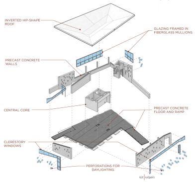It forced us to get creative in terms of the house’s construction. By doing precast concrete it allowed us to take almost all of the trades involved in building a house off-site into a controlled factory environment. Using advanced BIM software, we were able to streamline our construction process by having a 3D model and then extracting all of the necessary drawings and documentation from that model, saving time and money for fabricators and contractors. All of the shop drawings and deliverables come from one central 3D model. By constructing and deconstructing the house in a 3D environment we were able to foresee any site operation problems and address them before we arrived on site. By optimizing the construction process we were able to properly allocate funds back to the architecture and building systems.