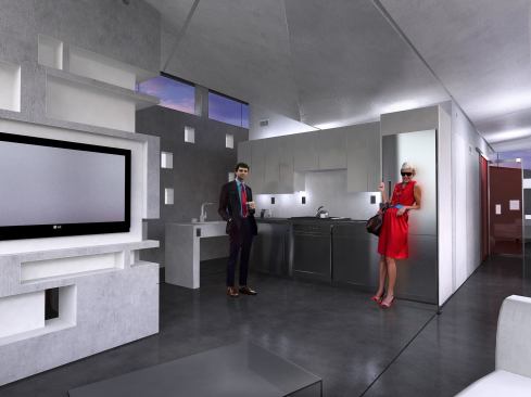 We wanted to design something that took the utility of a project and exploited it for an aesthetic. This house is meant for a couple retiring at the Jersey shore, so we wanted it be low-maintenance, as the Jersey shore is susceptible to salt water and corrosion, which also informed our decision to go with concrete. In this way, the house responds to regional environmental requirements, which we think is of foremost importantance for the sustainable movement.