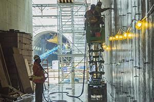 While up to two years of work remains on tunnel boring and finishing, the south portal results are outstanding. F.D. Thomas has installed Preprufe SCS to about 400,000 square feet of walls. Verdict: a bone-dry tunnel.