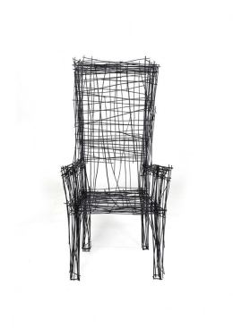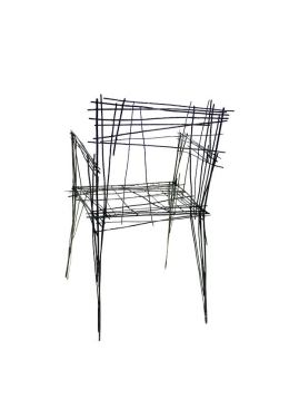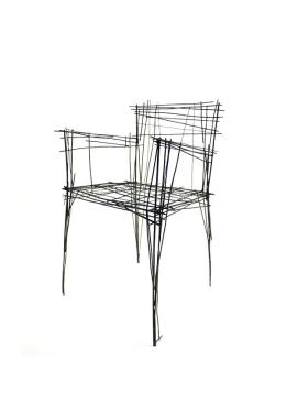 At first this image looks like a sketchy line-drawing of a chair. Multiple, wavering lines of varying thickness trace the outlines of the object. It is, presumably, an early doodle for a new piece of furniture, lacking substance, refinement, and any notion of materiality.