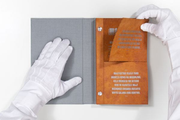 A new project from communications firm DDB New York and nonprofit Water is Life aims to elevate a message—water sanitation—through its medium—advanced filtration paper. The so-called Drinkable Book features pages coated with pathogen-killing silver nanoparticles, which give the paper its orange hue. The perforated paper is removable and can be inserted into a supplied plastic case that doubles as a filter. When dirty water is poured over the filter, the pages go to work, killing nearly all of the bacteria and purifying the water to a level similar to that of tap water in the United States, its makers say.