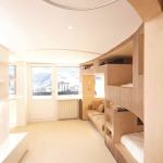This ski apartment in Les Ménuires, France, is not quite 600 square feet, but it comfortably sleeps eight people who share twin baths, a kitchen, and two walls of Alpine views. Paris-based H2O Architects presented the clients with an innovative idea about how to live large within the compact footprint. Homeowners and guests sleep, bathe, and cook all within an expansive built-in made from birch and walnut plywood that curves around the inside walls. Asymmetrical cutouts provide storage and are placed to make unpacking and getting into beds feel like climbing a mountain, according to the firm. Architect Antoine Santiard adds that he and his two partners inverted their way of looking at space: “Rather than trying to fit the furniture into the apartment, we decided to fit the apartment into the furniture.”