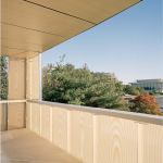 Balconies Viewed by day or by night, the most compelling aspect of the House of Sweden is the band of projecting balconies that wraps the building façade. Wingårdh first likened the balconies to a traditional Swedish lantern and initially designed their outer surfaces as a wood veneer sandwiched between sheets of tempered glass. Mockups of the assembly were ordered to gauge the cost, but the pricing exercise also raised concerns about fading, mold, delamination, and different rates of expansion between wood and glass. “The panels looked great, but we decided against them because the manufacturers wouldn’t warranty the system,” says VOA project manager Warren Wick.