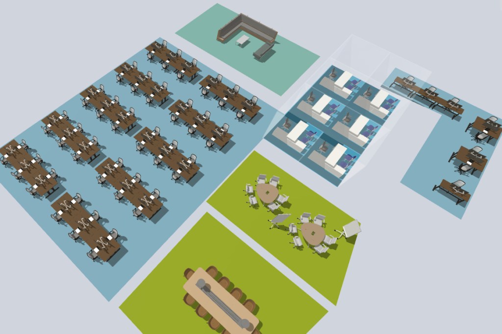 - Less open-office space. With employees doing most of their heads-down work at home, office planning will include more non-dedicated, collaborative space for teams. These spaces could be planned as conference rooms but can comprise hard-walled rooms or soft spaces that are open and visually accessible, with many furniture options.