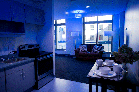 Within this stage for multicomponent indoor environmental research, participants wear biometric tracking devices that report to the same control center as do the building system monitors. When combined and interpolated, the data provides a robust picture of how the human anatomy is affected by changing environmental conditions, such as light, temperature, humidity, and noise.