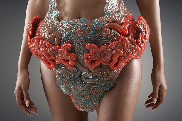 During her talk in March at TED 2015 in Vancouver, MIT Media Lab assistant professor Neri Oxman discussed Mushtari, a wearable technology whose hollow internal tracks feature a photosynthetic bacteria culture that allows it to generate bio-fuel from sunlight. Mushtari is part of a series of 3D-printed wearables introduced by Oxman last year to consider the resources required to sustain human life on other planets. Fabricated with Stratasys’ triple-jet, multi-material 3D-printing technology, the piece explores the idea of regulating and repairing systems—human and otherwise. [Stratasys]
