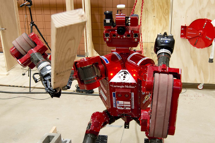 Meet CHIMP, also known as the CMU Highly Intelligent Mobile Platform Robot. Developed by engineers at Carnegie Mellon University, the humanoid ’bot can wield power tools, move 2x4s, and climb walls. And it will go for gold in DARPA’s annual Robotics Challenge next month. [Core77]