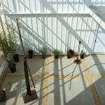 A 160-square-foot green roof made up of drought-tolerant, native plant modules is placed on the second floor shade framing.