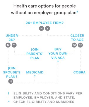 Another option is to purchase an individual health insurance plan. The Affordable Care Act Marketplace offers a range of options, though not every insurer offers plans through that exchange. “These plans are priced based on location and also age,” Berman says. “In many cases, COBRA will be better in terms of pricing for those closer to age 65, but younger individuals may be better off purchasing coverage on their own.”