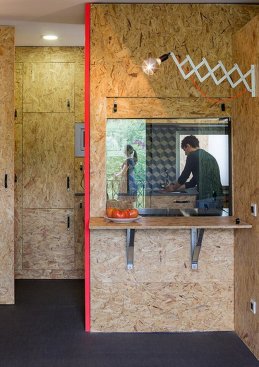 The Pop-Up House, located in a gutted 1950’s 737 square-foot apartment, is made up of 54 small modular units that each serve a particular function from eating to entertainment. Simply, it’s the reverse modular home.