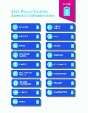 The United States earned a C- from the American Society of Civil Engineers on its 2021 infrastructure report card. ASCE, which releases report cards for the U.S. and each individual state every four years, evaluated a number of factors, including road conditions (which earned a D as 43% of this country’s roads are in “poor or mediocre condition”); schools (D+); transit (D-); solid waste (C+); hazardous waste (D+); and bridges (C). Rail received the highest grade in this country with a B. The U.S.’s overall grade did, however, improve from 2017, when it received a D+. [Infrastructure Report Card]